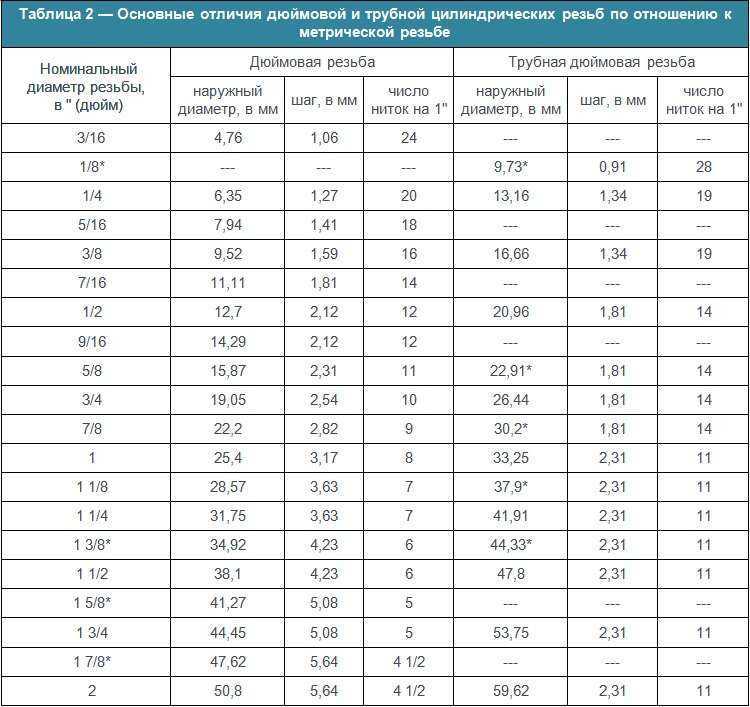 Различия между метрической и дюймовой резьбой