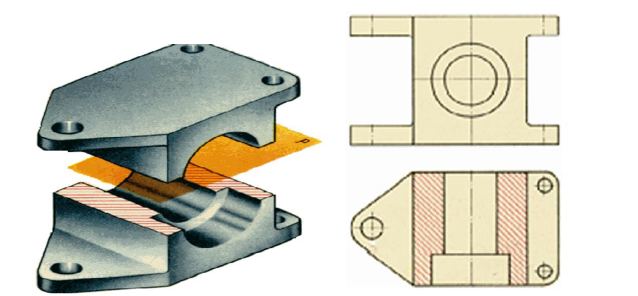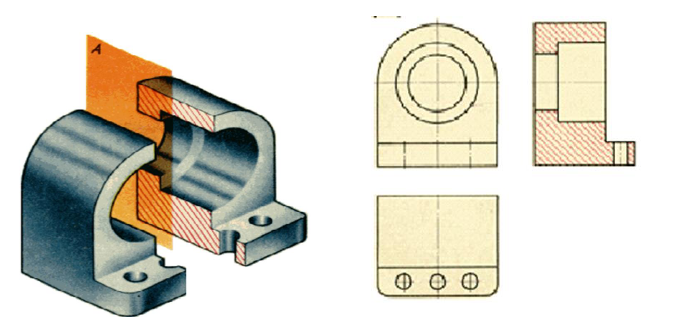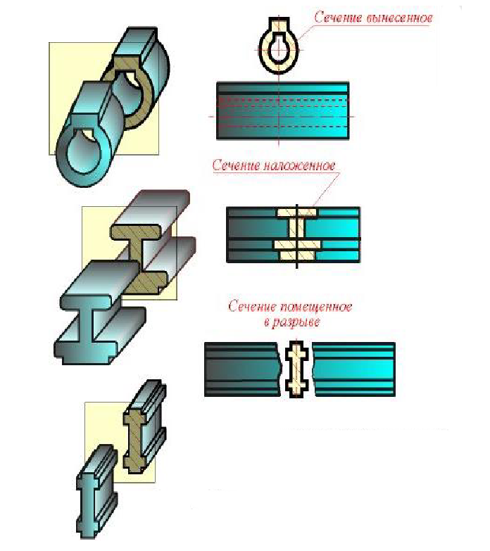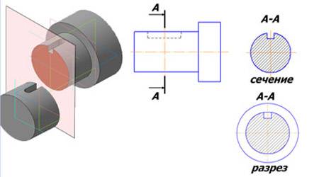 необходимо для изображения поперечной формы детали. Чтобы отразить сечение, представляют некую секущую плоскость, которая условно рассекает деталь в определенном месте. В результате получается срез, полностью отражающий необходимую форму.