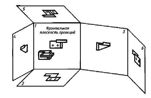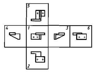 4.3. За основные плоскости проекций принимают шесть граней куба; грани совмещают с плоскостью, как показано на рисунке 2. Грань 6 допускается располагать рядом с гранью 4.