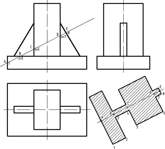 - Линия сечения, проведенная на чертеже, означает положение секущей плоскости.