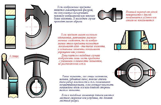 Если изобpажение пpедмета является симметpичной фигуpой, то допускается вычеpчивать половину изобpажения или немного более половины.