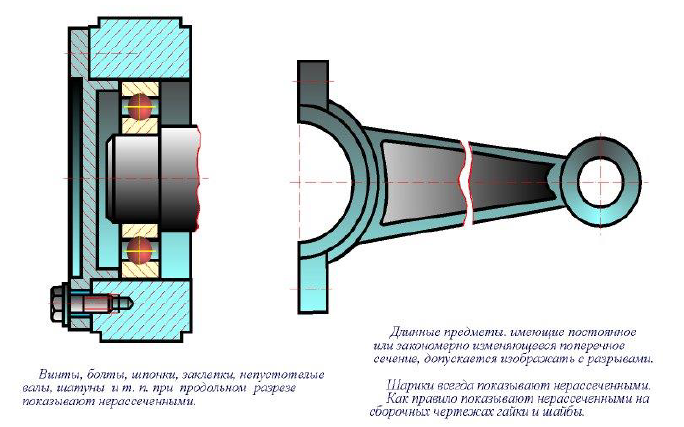 Важно! Работая с чертежом, не забывайте учитывать то, чем отличается сечение от разреза, особенности изображения и правила обозначения разрезов. Это очень важно.. Сечение