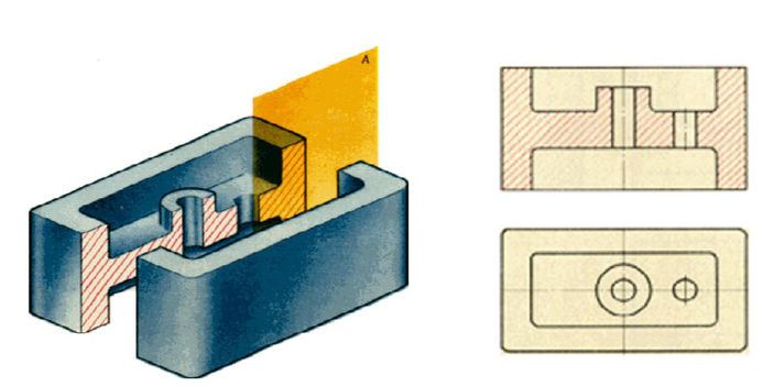 - Сечение предмета отображает лишь то, что явно попадает в её плоскость, а разрез — всё это плюс то, что располагается от наблюдателя за секущей плоскостью (после мысленного удаления той части объекта, что расположена ближе к наблюдателю).
