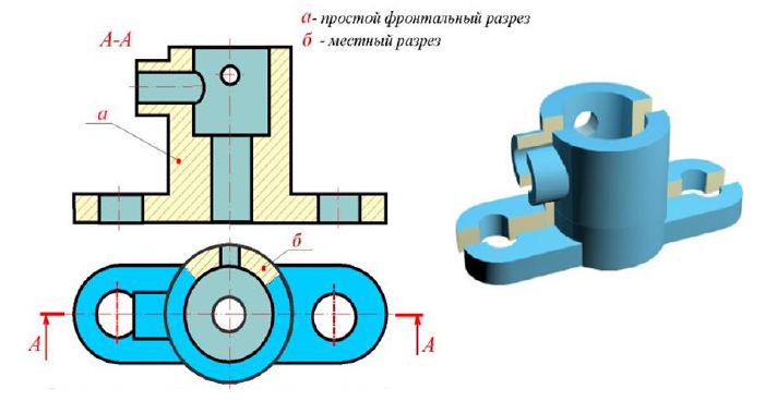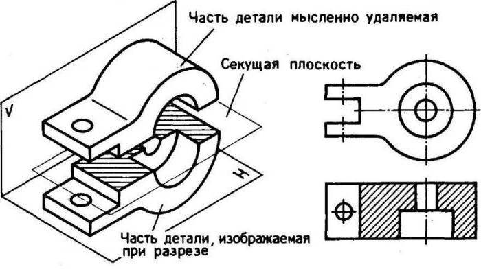 – изображение, полученное в процессе мысленного рассечения деталей секущей плоскостью. Обыкновенный разрез отличается от сложного количеством секущих плоскостей: в первом случае она одна, во втором несколько.