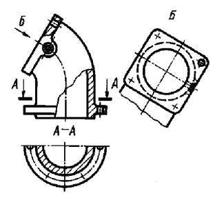 5.5. Дополнительный вид должен быть отмечен на чертеже прописной буквой (см. рисунки 9, 10), а у связанного с дополнительным видом изображения предмета должна быть поставлена стрелка, указывающая направление взгляда, с соответствующим буквенным обозначением (например, стрелка Б, рисунки 9, 10).