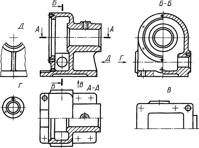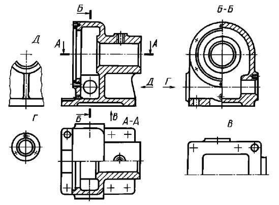 5.7. Местный вид (вид Г, рисунок 8; вид Д, рисунок 13) может быть ограничен линией обрыва, по возможности в наименьшем размере (вид Д, рисунок 13), или не ограничен (вид Г, рисунок 13). Местный вид должен быть отмечен на чертеже подобно дополнительному виду.