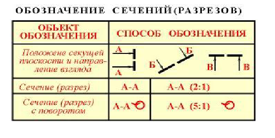 Обозначение разрезов установлено согласно специальной документации и в строительстве определяется системой ГОСТа 2.305-2008. Требования заключаются в различиях между разрезами и сечениями и определяются правилами: