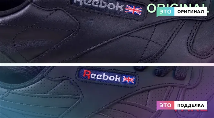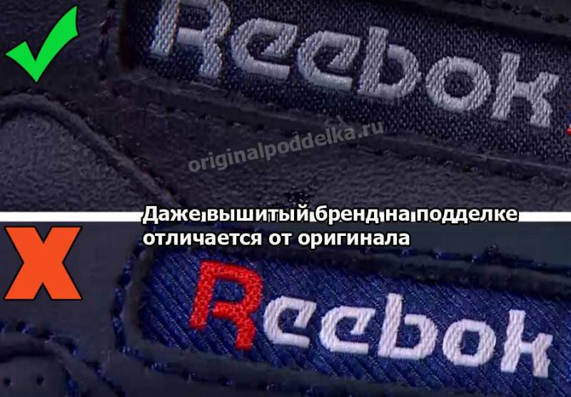 Неправильно написанная фирма или нашивка лейбла будут чётко указывать на грубую подделку. Часто встречаются такие написания «Rebok» или «Reebuk». Если замечена ошибка в названии, можно смело утверждать о наличии в руках имитации, некачественной и непотребной для постоянного ношения.