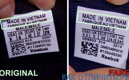 Например, покупатель решает приобрести пару спортивной обуви известного бренда и хочет знать, как отличить оригинал от подделки Reebok Classics. На коробке написано, что они были сделаны во Вьетнаме.
