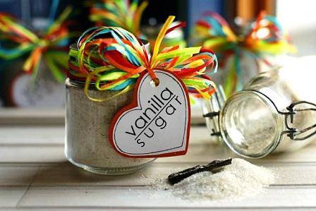 Ванильный сахар, часто встречающийся на полках магазинов, как правило, представляет собой сахарную пудру, смешанную с синтетическим ванилином. В более дорогой вариант данного продукта производители добавляют натуральную ваниль. Кстати, ванильный сахар легко приготовить самостоятельно в домашних условиях. Для этого нужно поместить сахарную пудру и стручок ванили (в кулинарных рецептах нередко используется название «палочка ванили») в банку с плотно закрывающейся крышкой. Через некоторое время сахар обретет яркий ванильный аромат. Такой продукт прекрасно подходит для украшения выпечки, приготовления десертов.