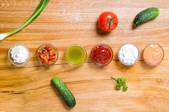 - соусы (майонез, кетчуп, сметана, чесночный соус)