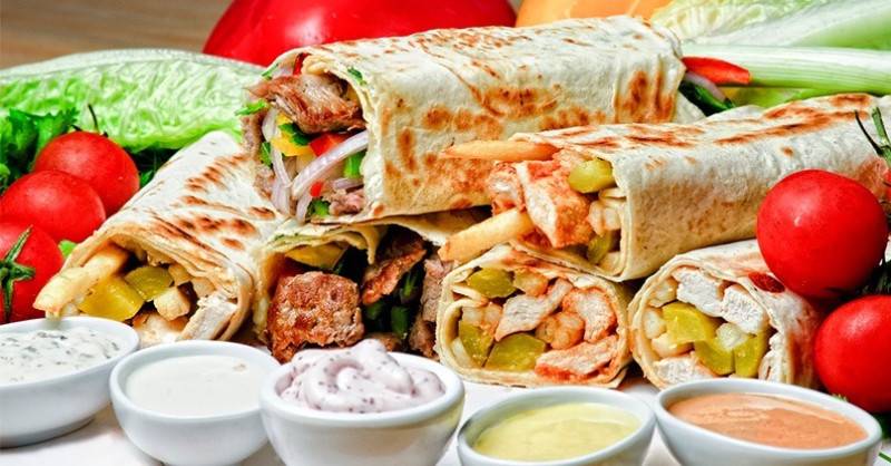 Шаурма – ближневосточное блюдо из лаваша, начиненное приготовленным на гриле рубленым мясом, соусом, свежими овощами и специями. В мусульманских странах