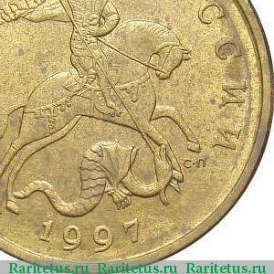 Обозначение двора осталось на монетных знаках и после деноминации. Но Ленинград вернул себе историческое имя Санкт-Петербург, и аббревиатура ЛМД трансформировалась в СПМД. Однако, для мелкой разменной монеты решили оставить исключительно обозначение городов (без упоминания о монетном дворе). И на копеечных номиналах 1997 года снова появилась буква “М”. Практически на том же месте, что и на копейках 1991 года. А букву “Л” сменила двухбуквенная конструкция с точкой “С-П”. Аверс копеечных номиналов украшен изображением Георгия Победоносца, поражающего змея копьём. Поэтому всегда помним, видя фразу “Ищите обозначение монетного двора под копытом коня”, что речь идёт только о копеечных номиналах.