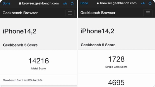 Чтобы быть более конкретным, iPhone 13 Pro против iPhone 12 Pro GPU Metal набрал 14216 баллов против 9123.