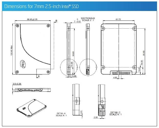 Ранее были экземпляры и с 9,5 мм, поскольку форм-фактор перешел по наследству от механических HDD. Однако этот показатель скорее критичен владельцам ноутбуков, ведь отсек для установки имеет ограниченную высоту.