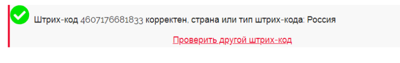 Если вы проверите оригинальность товара по штрих-коду онлайн, мы получим подтверждение правильности наших расчетов. Штрих-код 4607176681833 правильный.