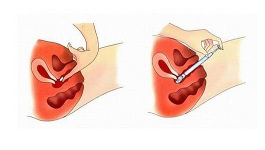 - Ввести аппликатор во влагалище на максимальную глубину и нажать на плунжер.