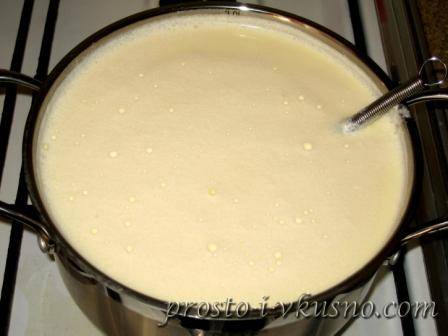 Как молоко закипит необходимо влить в него оставшийся продукт и вновь довести до кипения.