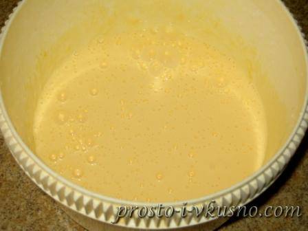 В молоко взбитую сметану с яйцами нужно вливать порционно при тщательном перемешивании.