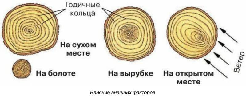 Годичные кольца древесины образуются в результате изменения сезонной активности клеток камбия. Внешний вид годичных колец обусловлен хронологической закономерностью: весной больше образуется проводящей ткани (более тонкая и рыхлая внутри), а осенью – механическая (толстая, более твердая). Именно поэтому годичные кольца на спиле дерева выглядят как чередование колец.
