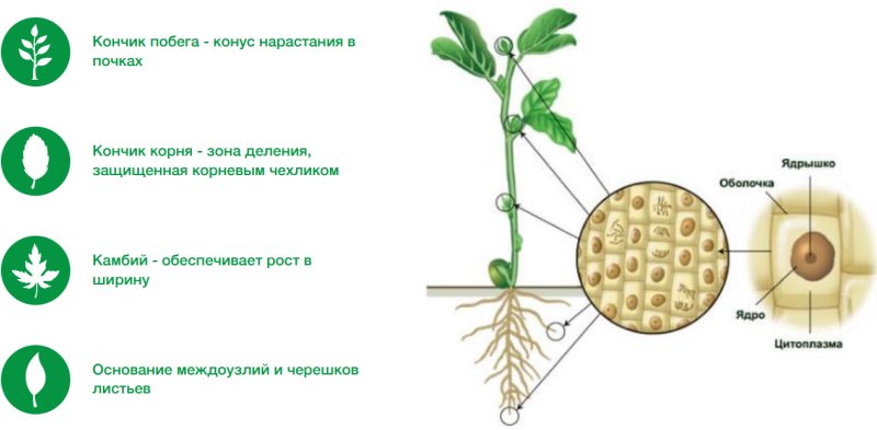 Ткань располагающаяся на верхушке побега и на верхушке корня