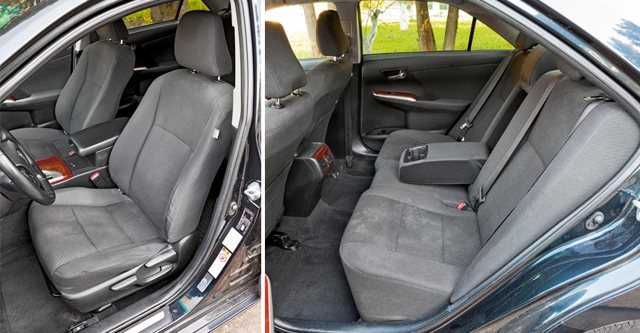 Несмотря на достаточно устаревшее оформление, в салоне Toyota Camry очень уютно — мягкие кресла хорошо поддерживают спину водителя и переднего пассажира, хотя и вынуждают достаточно часто менять позу в дальних поездках. Поэтому сравнение Пассат vs. Камри второй автомобиль всё же не проигрывает. Тем более что он предлагает: