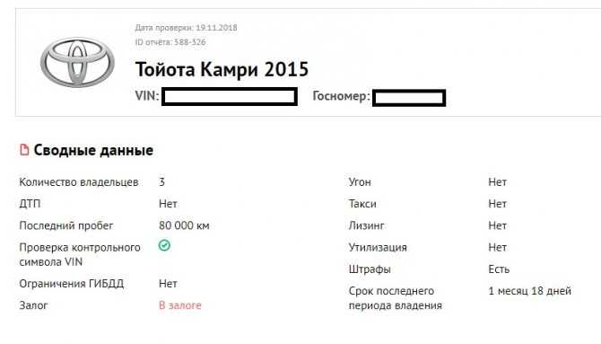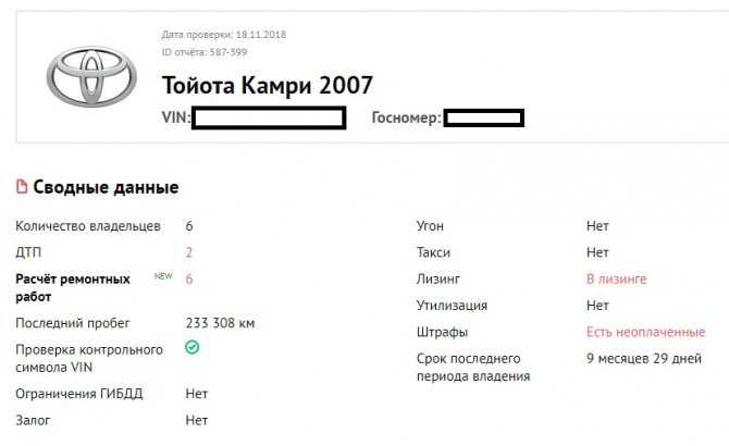 Даже бизнес-класс не защищён от ДТП, которые могут произойти с автомобилем. К тому же, Toyota Camry – одна из самых угоняемых моделей. Также автомобили этой ценовой категории часто находятся в залоге или лизинге. Давайте посмотрим несколько примеров отчётов из