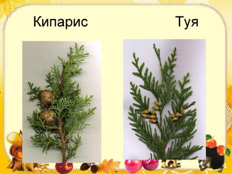 Чтобы понять различия между кипарисом и туей, рекомендуется сравнить биологические признаки. Как правило, это касается шишек: