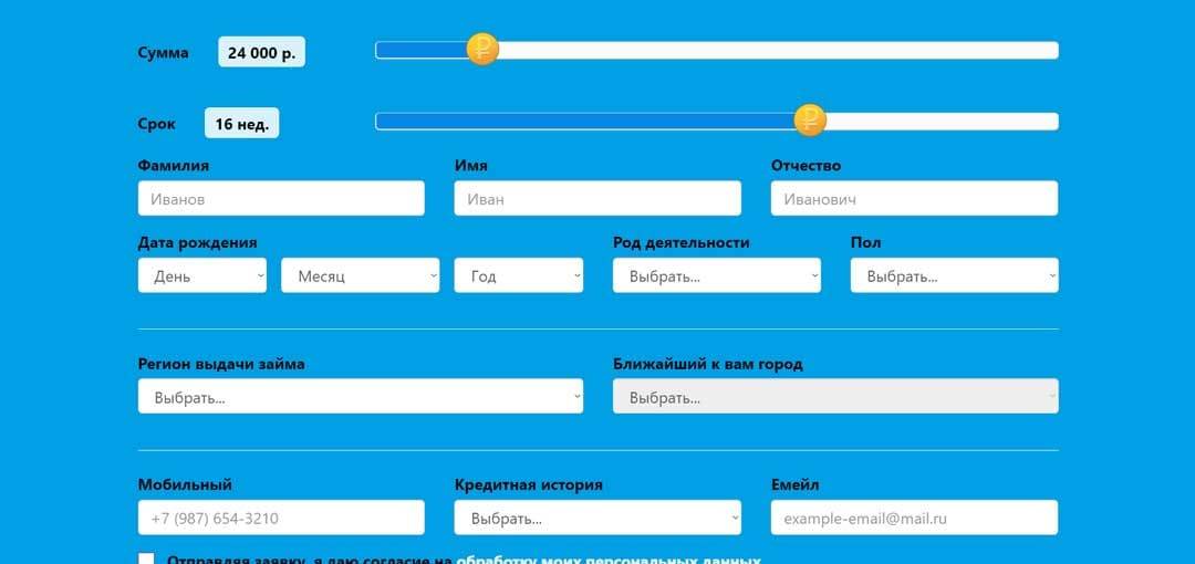 В случае с займом в МФО ситуация проще. Заемщик может вообще не приходить в офис, а подать заявку и заполнить анкету на сайте микрофинансовой организации. При этом требуется предоставить значительно меньше информации: ФИО, дату рождения, род деятельности, адрес проживания, телефон, электронную почту и состояние кредитной истории. Далее МФО принимает решение. На это уходит не более 30 минут.