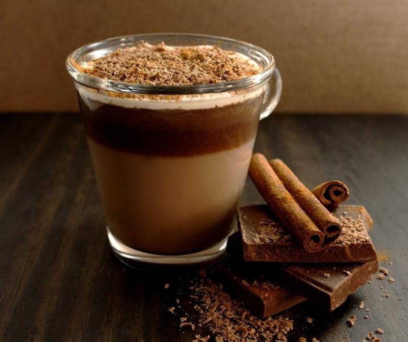 Калорийность горячего шоколада зависит от добавленных ингредиентов. Обычно она составляет от 150 до 250 Ккал. Также в 100 г содержится почти 15 г углеводов, 8-9 г жиров и всего 3 г белка.
