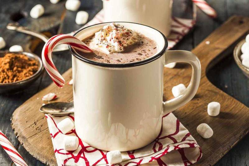 При подаче к столу можно добавить слегка подслащенные взбитые сливки, немного какао-порошка и измельченного шоколада. В кастрюлю или кофейник вылить ¾ стакана воды, всыпать туда какао-порошок, тщательно помешивая на среднем огне. Когда комочков не останется, следует добавить молоко и оставить до закипания. Всыпьте сахар, часто помешивая, пока смесь не станет гладкой и кремовой. Для вкуса можно добавить немного шоколада, который должен растаять в напитке. Когда он будет готов, его разливают по кружкам, украшая верх взбитыми сливками и посыпая небольшим количеством какао-порошка. Горячие зимние напитки могут быть украшены специями, конфетами, ломтиками фруктов или нежным зефиром.