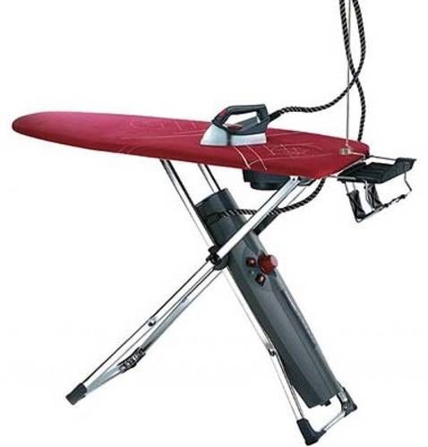 Главное отличие гладильной системы от паровой станции в том, что в таком комплекте прилагается гладильная доска. Обычно парогенератор укреплен с краю доски, иногда закреплен на ножках. В этом не было бы ничего удивительного, если бы не особая конструкция столешницы гладильной доски. Дело в том, что парогенератор выделяет такое большое количество пара, что обычная деревянная столешница гладильной доски в скором времени разбухнет и станет негодной.