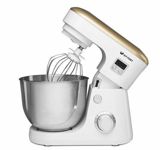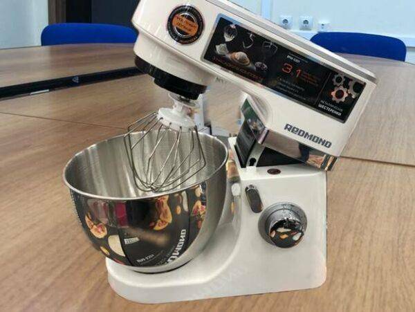 Еще один российский бренд, выпускающие мощные планетарные миксеры (1000 Вт) по средней цене. В первую очередь, пользователи отмечают отличный замес теста или перемешивание фарша. Эта функция выполняется двумя металлическими крюками.