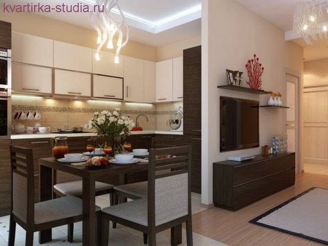 - кухня соединена с общим жилым пространством.