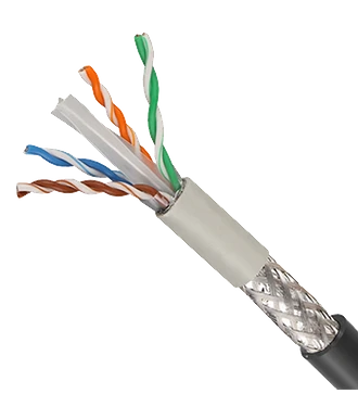 - S/FTP — в изделиях выполнено экранирование каждой жилы с использованием фольги, для наружного слоя применяется сетка из медных сплавов;