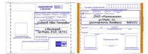 На оборотной стороне указываются данные, кому предназначено отправление. При этом оборотная сторона бланка, как уже было сказано выше, будет дополнена сотрудником почты в момент вручения письма и подписана получателем.