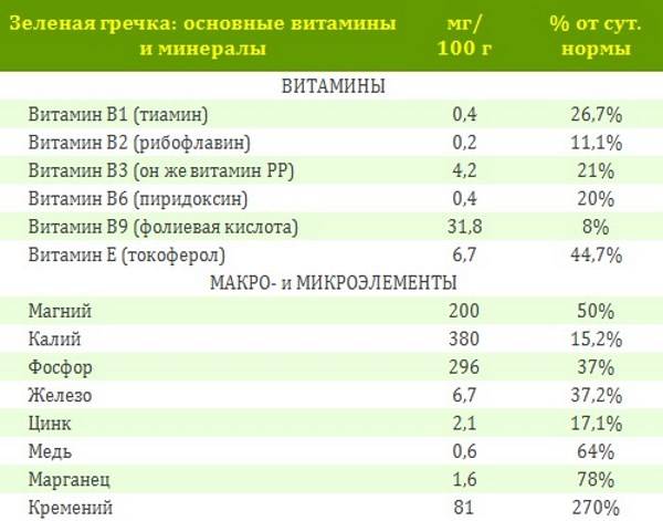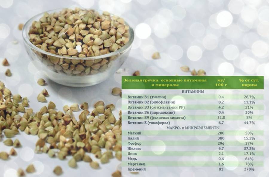 Содержание витаминов и минералов в зеленой гречке