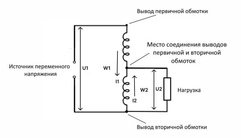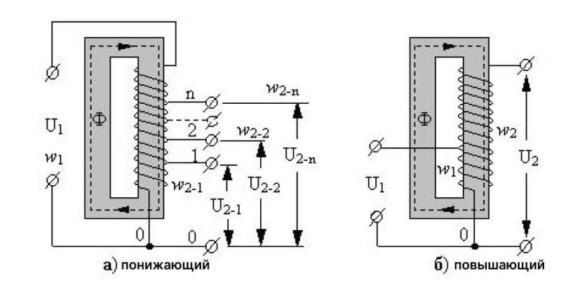 В этом случае разность напряжений между первичной и вторичной обмотками находится по соотношению их витков (коэффициент трансформации).