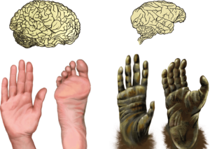 Мы уже писали о статусе человека в мире приматов, а также об успехах приматов в изучении языка, и описывали сравнительное исследование, в котором обезьяны справляются с задачей на ложные представления. Различия между человеком и обезьяной найдены и на уровне мозга: у людей пластичность мозга оказалась выше.