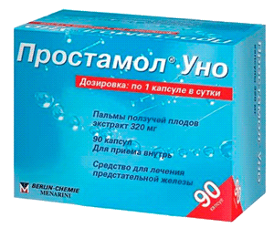 - Простамол Уно– немецкий аналог, выпускаемый фармакологической компанией «Берлин-Хеми/Менарини». Форма выпуска – капсулы для приема внутрь. Основное действующее вещество – спиртовой экстракт плодов пальмы сабаля. Простамол Уно назначается при функциональных нарушениях мочеиспускания, возникших на фоне аденомы простаты. Обладает вазопротекторным и противовоспалительным действием, уменьшает проницаемость сосудов. Средняя цена 1800-2000 рублей.