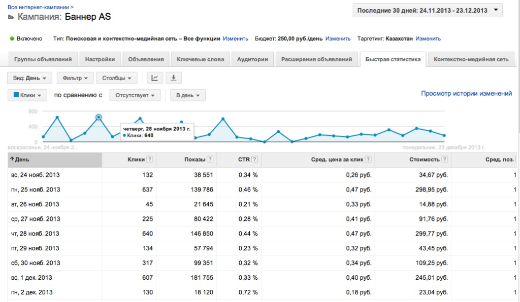 - количество кликов и их стоимость;