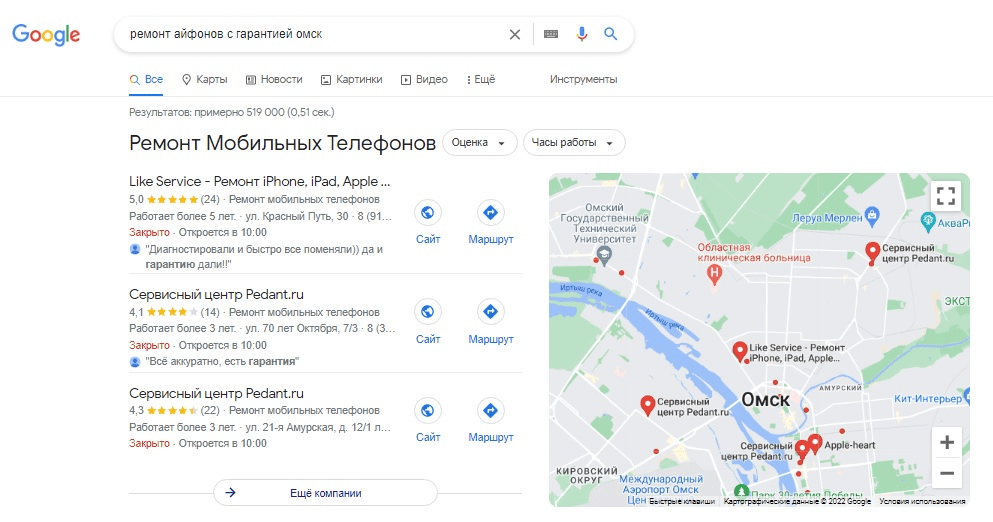 - Спецразмещение: первые 4 строчки списка, в мобильных версиях браузеров их может быть 3.