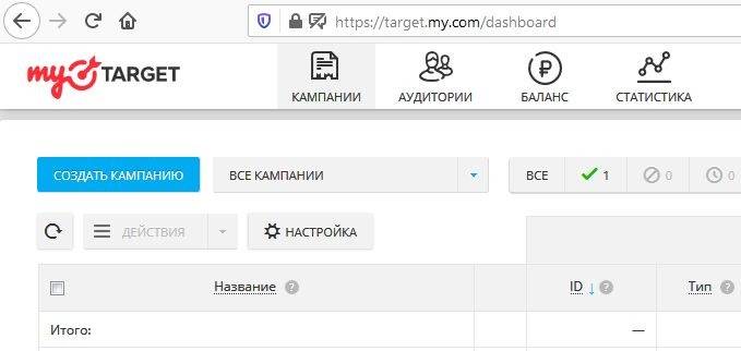 Рекламный кабинет MyTarget
