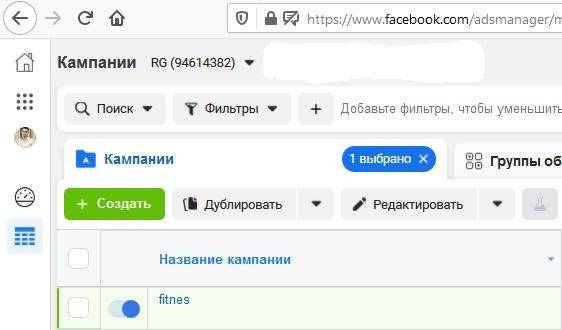 В нем можно настраивать рекламу с показами в Facebook* и Instagram*. Для создания новой рекламной кампании нажимаем зеленую кнопку «Создать»: