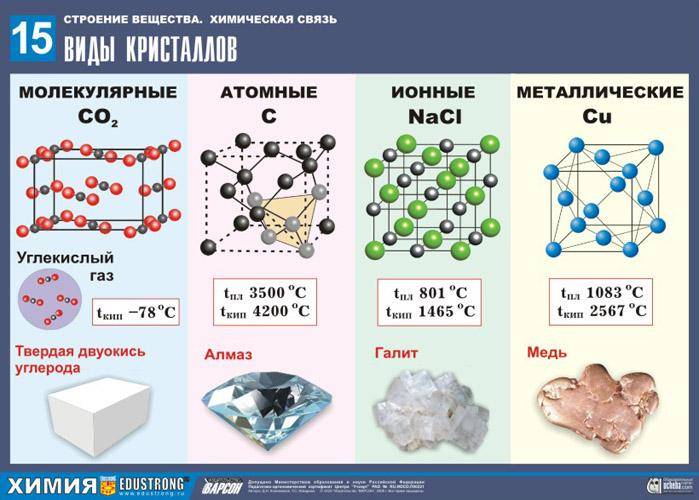В твердых веществах за счет сильного взаимного притяжения у частиц нет возможности развивать необходимую кинетическую энергию и тем самым передвигаться свободно от заданной позиции при условии сохранения текущей температуры и давления. Частицы твердых веществ располагаются тесно друг от друга и образуют определенную структуру, которую называют кристаллической решеткой.