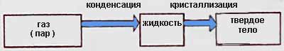При понижении температуры вещества в газообразном состоянии можно перевести его сначала в жидкое, а затем в твердое состояние.