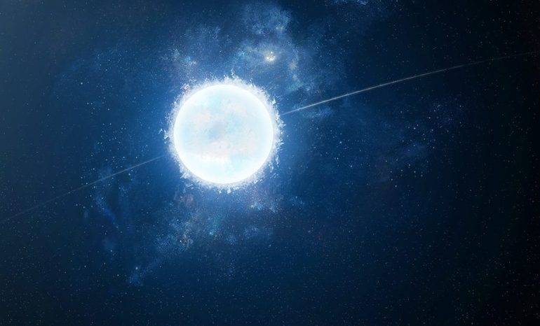 При сверхвысоком давлении, сжатии силами гравитации и не очень большой температуре отрицательно заряженные частицы вещества объединяются с положительными, и оно принимает нейтронное состояние.