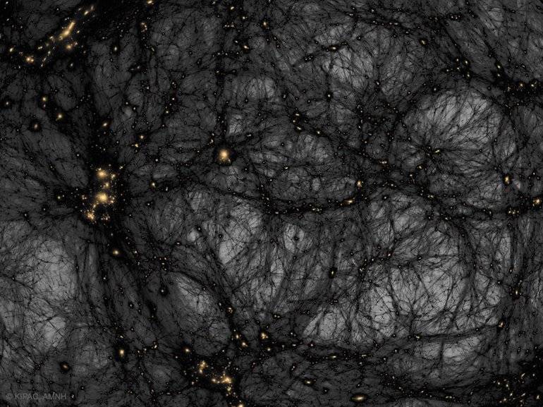 Ещё одной интересной формой вещества является тёмная материя, главная характеристика которой заключается в отсутствии испускания и взаимодействия с электромагнитным излучением. Из-за этого её непосредственное наблюдение, а также исследование природы и состава не представляется возможным, а существование обнаружено только благодаря имеющимся гравитационным эффектам.