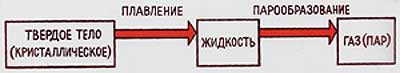 При повышении температуры вещества возможно перевести его сначала из твердого состояния в жидкое и при дальнейшем нагревании – в газообразное (пар).