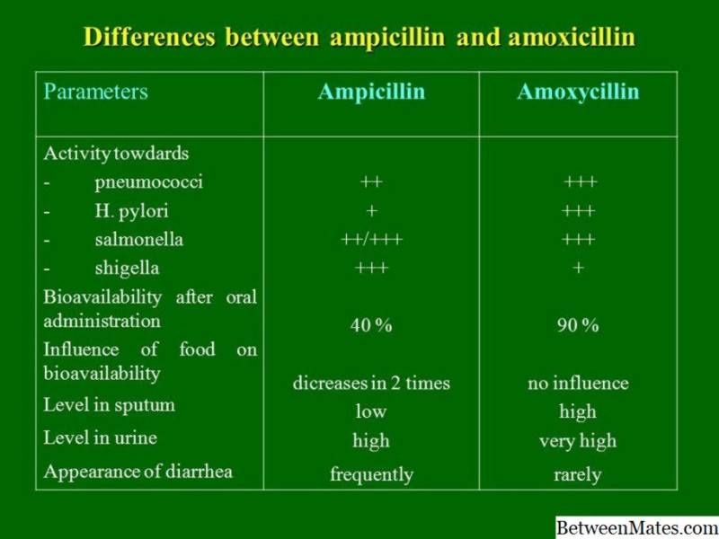 Именно разница в составе является определяющей характеристикой, отличающей амоксициллин от ампициллина: